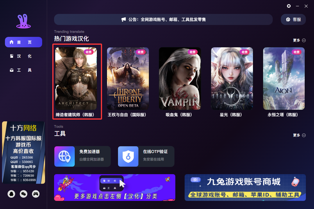 ※ 请首先在上方链接下载安装九兔外游助手,九兔外游助手内汉化程序可自动下载、安装、升级更新,并提供诸多实用外服工具。
